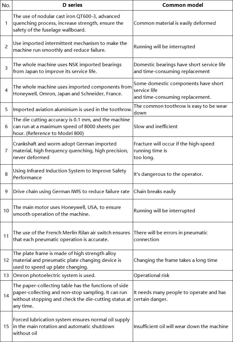 * Koko kone omaksuu American Meijin ja Ranskan Schneider Electricin. Komponentit koneen vakaan toiminnan varmistamiseksi.