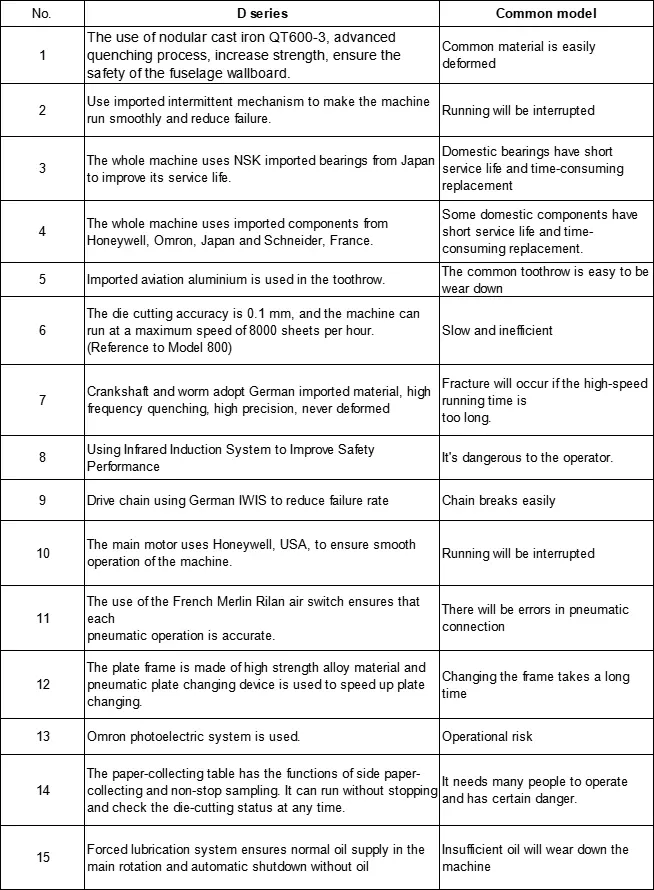 * Koko kone omaksuu American Meijin ja Ranskan Schneider Electricin. Komponentit koneen vakaan toiminnan varmistamiseksi.